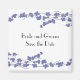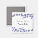 Flores elegantes de color azul sobre ramas delicadas. Un fondo blanco acentúa los nombres de la novia y del novio y la fecha de boda. Personalizar como se desee.