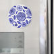 Flores y hojas delgadas hechas con formas acuarelas y detalles enmarcados. Paleta azul.