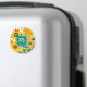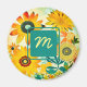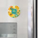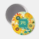 Imán de flores de arte folclórico amarillo y turquesa. Agregar iniciales en el área personalizada.