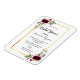 Delante: fondo blanco con un marco de oro falso. Decorado con flores de color burdeos oscuro, rosas, plumas de estilo boho y vegetación. Personalice y agregue el nombre de la novia para ser y los detalles del fiesta. También puede utilizarse como recordatorio de fecha para los invitados.