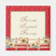 Imán de estilo rústico con girasoles acuarelas sobre la valla rústica y fondo de bandana roja. Personalizable El texto "Granja dulce" puede ser personalizado.