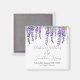 Este imán personalizado presenta un hermoso diseño botánico y floral encantador para bodas. El fondo es simple y elegante blanco con flores de glicina morada bordeando la parte superior.