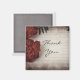 Un imán de plástico con una fotografía temática floral de otoño. Papel de escritura florido con flores rojas bonitos y hojas verdes colocadas alrededor de los bordes. El texto dice gracias en un sofisticado tipo de letra manuscrita.