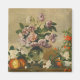 Este diseño presenta una imagen original de un cuadro de aceite sobre lienzo del artista italiano Bernardo Strozzi (1581-1644). Es una obra de arte de vida muerta que muestra una bella peonía rosa y blanca en un jarrón de vidrio. Las flores de peonía están rodeadas de otras flores y frutas, como los melocotones. Tradicionalmente, los pueblos flaquean entre finales de primavera y principios del verano.