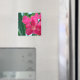 La fotografía original de MaeFlowers en este imán de colores brillantes muestra flores rosadas contra hojas verdes, con un toque de cielo azul claro mostrando a través. Hace un pequeño y encantador regalo del Día de la Madre.