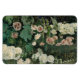 Este diseño presenta un cuadro de la artista española Marià Fortuny (1838-1874). Muestra un grupo de plantas de hollyhock en un jardín floral. Las flores de los hollyhocks son de color rosa y blanco, y se distinguen de la vegetación de las hojas y tallos de las plantas.