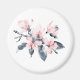 Un imán con un ilustracion acuarela de bonito de flores rosadas con hojas grises sobre un solo tallo. Diseño botánico moderno y elegante.
