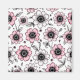 Flores y hojas dibujadas en blanco y rosa sobre un diseño de fondo blanco.