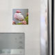 Los imanes pueden ser divertidos, caprichosos y tener frases pegadizas. Mira este imán con una gota de lluvia colgando de una flor.