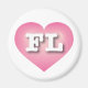 Este imán presenta un vibrante corazón rosado con un centro blanco lavado que contiene las letras negrita, blanca y alta del funda FL, la abreviatura oficial de Florida, el estado del sol.