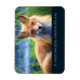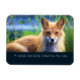 A magnet with an inspirational wise quote which says: A sweet friendship refreshes the soul. With a fluffy looking red fox laying amongst green grasses. Has a dreamy mystical feel.