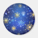 Navidades azules con copos de nieve de oro y joyas blancas. Copos dorados de nieve. XMAS.