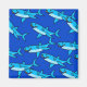 Ilustracion de tiburones extravagantes nadando en un pozo bajo el agua. Imagen disponible en diversos regalos y productos.
