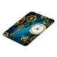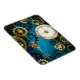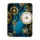 fondo turquesa, texturado, de vapor punk con bronce y oro, llave de plata y reloj. Estilo Steampunk.