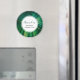 Un imán de cumpleaños con una foto de cierre de una hoja tropical verde que muestra algunas frondas de palmeras vibrantes. Un círculo blanco se cubrió por encima con el texto dentro.