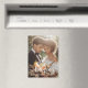 Imán de frigorífico que presenta su foto personalizado con texto en blanco superpuesto "amor" en un elegante tipo de letra de guión y los nombres y fecha a continuación.