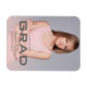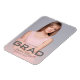 Personaliza y agrega tu propia foto del graduado. Superposición de foto en rosa oro. Agrega año y nombre de la escuela. Con la palabra: Grad escrita con letras mayúsculas grandes. Texto gris.