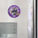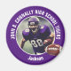 Este genial imán de fotos de jugadores de fútbol de secundaria personalizado en morado presenta tipografía blanca de tu equipo y nombre de jugador. Personaliza con tu nombre de atleta al lado de la pelota.