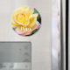 Una foto original de una rosa de la paz que crece en mi jardín. Tiene pétalos suaves de color amarillo dorado y rosa con hojas verdes profundas. Tiene gotas de agua de la lluvia reciente. Simboliza la paz, lo que la convierte en una de mis flores favoritas. Se muestra aquí en un imán decorativo. Personalízalo con un nombre o mensaje en lugar de "Paz" que se muestra aquí. ¡Hermosa manera de disfrutar un toque de la naturaleza!