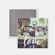 Comparte una foto favorita de todos los días, compromiso o boda en nuestros imanes cuadrados con "amor" en escritura moderna escrita a mano en blanco a lo largo de la parte inferior. ¡Hace un favor de boda único cuando se combina con una foto de compromiso!