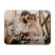 Personalizar esta tarjeta de imán Elopement "Just Married" con tu propia foto, fecha de boda y ubicación. Diseño de tipografía de escritura simple, moda y moderno con una plantilla fácil de usar que puede personalizar. Anuncie el intercambio de sus votos y el reciente boda a la familia y amigos con este diseño. ¡Enhorabuena! Nota: Se ha agregado una capa para que el texto sea legible con cualquier foto que elija. Avísame si necesitas ayuda con este diseño en info@lddesignloft.com. Visita lddesignloft.com ©lorenadepante