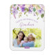 Personalizado imprimió imán del Día de la Madre personalizado con su foto y texto. Este diseño femenino de bonito presenta un borde floral acuático en tonos violeta y verde pastel. Utilice las herramientas de diseño para añadir más fotos, editar el texto con su propio mensaje especial y personalizar las fuentes y colores para crear sus propias tarjetas únicas del Día de la Madre para mamá y abuela.