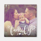 Un dulce imán fotográfico que presenta un precioso tipo de letra de guión cardíaco en blanco sobre una foto con el texto "Amor familiar". Puede cambiar la foto desde el menú de personalización. Una forma encantadora de recordar la acogedora y cálida de la familia.