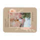 Imán. Foto moderna Salven la fecha en marco beige con flores rosadas y de melocotón. El boda de verano es una buena elección para disfrutar de las flores y el follaje del jardín.