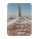 En el camino hacia un destino más feliz, una cita de aliento y esperanza. Fotografía atractiva de un faro en un día fresco de agitación, con la luminosidad del sol empezando a pasar.