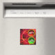 Resumen de fractales de naranja rojo psicodélico, sucio - imán de lavavajillas limpio con piedras de gema 3D coloridas... Arte fractal creado por Baldesign3d (c).