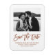 Anunciar la fecha de su boda a la familia y amigos con este personalizable ahorre el imán de anuncio de fecha. Presenta caligrafía audaz y tipografía simple. Personalice esta terracota para guardar el imán de fecha añadiendo sus detalles de foto y boda. Esta foto guarda el imán de fecha también está disponible en otros colores.