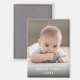 Dé el regalo de recuerdos especiales con un elegante imán rectangular de fotos personalizados. Esta plantilla está configurada para un bebé, pero es fácil de personalizar con el nombre de una familia, amigo o mascota, las iniciales monogramadas de una pareja de bodas o cualquier otro texto de su elección. Los colores y el estilo de fuente también se pueden personalizar utilizando la herramienta de diseño Zazzle. Crea tu propio obsequio para cualquier ocasión. El diseño presenta un diseño minimalista moderno, una elegante tipografía de estilo Art Deco vintage y un cuadro. No hay mejor regalo que las simples alegrías de los preciados recuerdos.