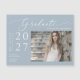 ¡Sí! ¡Tu escuela secundaria, secundaria, universidad, escuela de tecnología o estudiante de postgrado lo hizo y se está graduando! Celebra uno de los momentos más preciados de su vida y envía esta tarjeta magnética de invitación de graduación. El imán presenta un estilo minimalista moderno, sencillo y elegante, con un hermoso guión de caligrafía sobre un polvoriento fondo azul y la foto del graduado. Simplemente personalizar y reemplaza el texto y las fotos en el cuadro de personalización. Nota: La elegante redacción de la escritura caligráfica frases "graduados" junto con las líneas y otras obras de arte gráfico y elementos no se pueden editar, eliminar ni mover. Están arreglados.