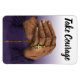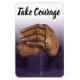 Foto de una persona que usa suéter morado, las manos dobladas con la cruz que cuelga sobre ellos. Este inspirador imán fotográfico mantendrá sus papeles en su lugar y es un gran recordatorio de tomar valor en medio de los desafíos de la vida.