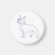 Klassisches Design in Blau-Weiß. Blaue Linienzeichnung einer französischen Bulldoggeauf weißem Untergrund.