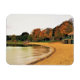 Una playa vacía en la orilla del lago Ginebra, Wisconsin. Árboles coloridos, una mañana de otoño tranquila. Foto tomada en octubre de 2014.