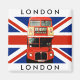 Imán Fridge Magnet w. Autobús de Londres y bandera brit