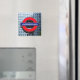 Un imán frigorífico con una imagen de la icónica señal del metro de Londres