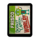 Un encantador imán de frigorífico para viajes vintage de Frisco Texas con un gracioso y amigable robot, junto con un divertido texto de estilo retro que dice: "Nos vemos en Frisco"