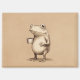 A charming and slightly quirky illustration of a frog holding a cup of coffee, captured in a vintage engraving style. The detailed linework and warm neutral tones give this character a timeless, artistic feel, while the simple concept adds a touch of humor and personality.