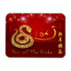 Linternas chinas con fuegos artificiales como fondo para el papel dorado cortado de una serpiente + gran dorado 2025 (escritura original a mano), dorado "Año de la Serpiente", saludando "Feliz Nueva Lágrima" en chino. Diseño en un imán de fotos flexible con fondo rojo oscuro. Tarjeta de felicitación coincidente, postal de vacaciones, pegatina, invitaciones y más... Perfecto para un alegre Año Nuevo Chino de la Serpiente 2025.