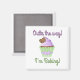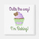 Magnate lindo y colorido para tu refrigerador. "¡Fuera del camino!" en lavendar púrpura haciendo juego con la helada de quequitos. Después, el ilustracion de quequitos, muy bien decorado. Y finalmente "I'm Baking" en el mismo tipo de letra divertida, pero a juego con el color de la ropa de quequitos. Ambos textos tienen sombras de gota para hacer que salgan del imán.