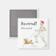 Un gran imán de frigorífico cuadrado con "¡Rewired, not Retired!", ilustrado con un boceto de pluma y lavado de Judy Adamson de un viejo manout trotando con su perro. También disponible como tarjeta de felicitación y taza de café.