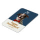 Moderno, festivo y divertido. Este imán flexible de navidades de howliday presenta un perro alegre con una corbata roja, una combinación de fuentes contemporáneas y texto de nombre personalizado. El color de fondo delantero es una moda azul oscuro y la parte posterior de la tarjeta tiene un cuadro de texto opcional si prefiere imprimir el mensaje. Sugerencia: deje el cuadro de texto vacío si prefiere una tarjeta en blanco.