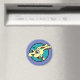Funny ilustracion de perro lindo alrededor del imán. El color de fondo se puede personalizar.