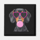 Imán Funny Dachshund Wearing Gles And Blowing Nk Bubble