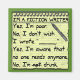 Si eres un escritor de ficción/autor, probablemente has escuchado todas las preguntas respondidas en este divertido diseño de cuaderno. Ahora, se puede ahorrar tiempo conversando con los tontos que hacen estas preguntas inane mostrando las respuestas en este imán. Eso significa más tiempo para que te escondas en la guarida de tu oficina, escribiendo personajes que parezcan burbujeantes basados en estos bufones. El imán muestra una libreta de notas amarilla con estas palabras: Soy un escritor de ficción. Sí, soy pobre. No, no me gustaría escribir "___". Sí, estoy consciente de que ya nadie lee. No, no estoy borracho (con "no" tachado). También está disponible en la sección "Gracioso Etc" de nuestra tienda con "no" cruzado, en funda no bebes. El color de fondo es el personalizable.