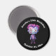 Magnet con un lindo ilustracion. Un monstruo Frankenstein con el pelo rosado y púrpura y un abrigo y corbata de zapatillas.