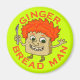 No es un hombre de jengibre, es un hombre de pan de jengibre. En este divertido diseño de imán de juego de palabras, grandioso para el humor de los Navidades durante todo el año, una rebanada de pan tiene un pelo rojo intenso y lleva un cuchillo manchado con gelatina. También disponible en bolsas, camisetas y otros artículos aprobados por el hombre-jengibre.