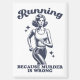 Searching for the perfect combination of running humor and a retro aesthetic? This funny running fridge magnet features a bold, vintage-style illustration of a determined female with the hilarious and dark-humor slogan, "Running Because Murder Is Wrong." It’s the ultimate conversation starter for your kitchen or office.